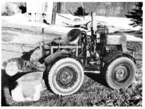 To power the "mini scraper," Athorp borrowed a hay baler's 2-cyl. 18-hp Wisconsin engine. A hydrostatic transmission provides infinite speeds.