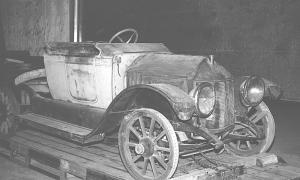 The car was originally found in 1943 in a farmer's field by three young men on the outskirts of Edmonton, according to present museum curator Dan Bodie,. "The back seat section of the body was missing. In those days people would often convert old cars into light-duty trucks by removing the rear portions of the vehicle, which is what someone might have had in mind in this case. In order to drive the car they had to retrieve the oil pan which the farmer was using as a trough. "The men apparently lost interest in the car and it found its way to the auto wrecker's yard. Reynolds found the car while looking for Model T parts."