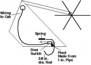 "So I made an inexpensive sensor that lets me know right away if my header's about to dig dirt. It consists of two automotive door light switches and two dash lights out of an old car wired to sensors made out of curved rods on each side of the header. The 3/8-in. dia. rods are 16 in. long and are curved down under the header. They pivot on a 1-in. long piece of pipe that bolts to the side of the header. A spring holds the rod tight against the door switch mounted underneath. The header normally runs 3 to 4 in. off the ground and when one side or the other dips below that, the rods pivot up and off the door switch, opening the circuit and activating the corresponding green dash light mounted on the steering column in my cab. Then I simply raise the header according to which light goes on.