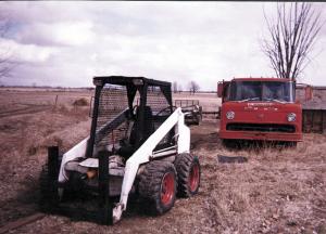 He patterned his home-built rig after a Melroe Bobcat. It took him about 6 months working in his spare time in his garage. At the time Madar was supplementing his in-come by hauling scrap steel so whenever he spotted a piece that might work on the loader, he'd hang on to it. He built the entire ma-chine from scrap.