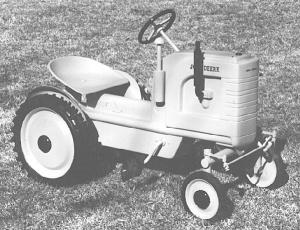 He also makes custom built pedal tractors modeled after John Deere L, LA, and LI tractors. The body is made of fiberglass, with three layers of resin and two layers of fiber-glass matting. The seat and steering wheel are made of cast metal. The tractors sell for $795 plus S&H.