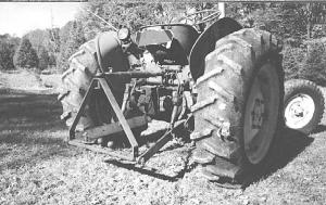 John Cooke, Monroe, Conn.: "When I got tired of hitches twisting on my drawbar, I bent a piece of 1/4 by 2-in. scrap iron into an inverted V shape with a flattened apex. I torched a 3/4-in. dia. hole in the flat to accept a Cat # 1 pin and welded the free ends to the drawbar. I welded two balls and a pin to accept a pintle hitch to the bar. Pinned in the top, it has enough movement to prevent bending and raises and lowers on the lift arms almost perfectly."