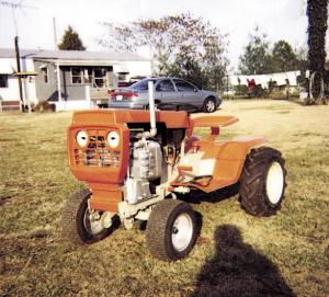 I also reworked this old 16 hp Montgomery Ward lawn tractor that was built by Wheelhorse. I repowered it with a 20 hp Onan 2-cyl. engine and beefed up the speed with sprockets and chain since it has a shaft drive instead of belt-drive.