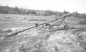 He used the original wheels and undercarriage of the auger and extended the hitch 3 1/ 2 ft. so his tractor doesn't bump the suction hose.