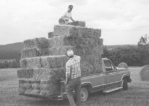 "It eliminates the need for a wagon and means a lot fewer trips back to the farm," says Victor's wife, Barbara. "We've used this idea for 15 years on two different 1/2-ton pickups - a 1982 GM 1500 and a 1980 Ford F-150. Normally there are about 40 small square bales per ton so we're carrying a 1 3/ 4-ton load, but with heavier bales a full load would weigh more than 2 tons. If the hay is heavy, we leave the top layer off. Haying is seasonal work, so we don't work the pickups this hard every day."