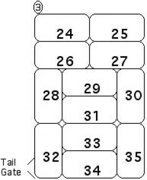 Barbara says it's easiest to explain the loading process layer by layer (see diagrams), but that's not the best way to do the job. "It's much easier to work from the front toward the back, leaving a place on the bed where the person who's loading can stand for as long as possible."