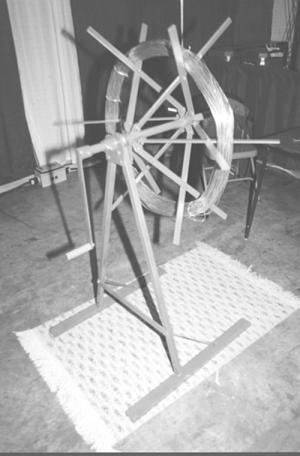 The "Wire Recycler" consists of a steel frame that mounts on a stand at the bottom and has a collapsible, circular wire holder on top. To roll or unroll the wire you simply turn a lever that's connected a shaft that runs through the wire holder. Once the wire has been completely rolled up, you tie the roll of wire together in a few spots, then pull a pin to collapse the unit so you can remove the roll.