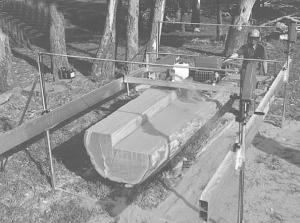 G.W. Lucas & Sons' mill is a portable saw mill which can be easily set up and run by one or two operators. It can be transported on a utility vehicle or pickup and features light but strong aluminum rails and a powerhead fitted with removable wheels for easy shifting.