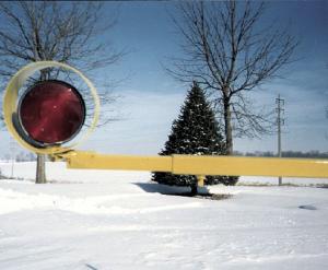 Using an 8-ft. long section of 1-1/4 in. square tubing and two 4-ft. pieces of 1-in. tubing, Neisen made a telescoping bar that he can safely extend out to about 14 ft. wide. He installed a set screw on each end of the center section of the bar to fasten the telescoping sections securely. Then he mounted flashing lights on the ends of the telescoping sections. The lights are protected by open end sections of pipe at each end of the boom.