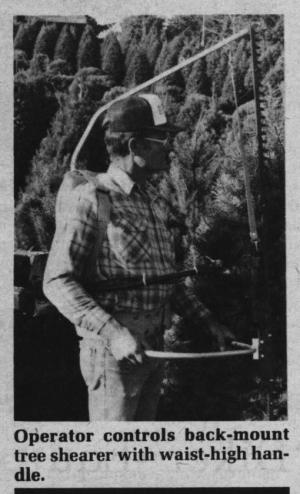 "A good operator can shear up to 3,000 trees a day with our new backpack shearer versus 300 to 500 trees working by hand," says Ernie Howe, Salem, Ore. about his company's new back-mount tree shearer which he and his brother Stan have used on their own tree farm for several years and began marketing last year.