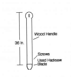 Standup Weed Puller CROPS Weed Control 25-5-35 Here's a simple standup weed puller I made that works well. The wood handle is 36 in. long and 2 in. wide at the lower end. A hacksaw blade is bent over the end of the handle, with a gap between the curve of the blade and the end of the handle. The blade is screwed to the sides of the handle and taped in place.