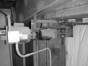 To make the opener, he started with a 1/2 hp electric motor. A chain and sprocket attach the motor to a 90-degree gear reduction box and speed is reduced further using a chain and sprocket to a jackshaft.
