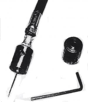 Easy-To-Use Grease Gun Attachment FARM SHOP Tools 26-5-40 Curtis Heinen, C&D Developments, Box 269, Craik, Sask., Canada S0G 0V0 (ph 306 734-2728): "Our new Grease Saver is an easy-to-use grease gun attachment that holds any standard grease needle firmly in place, making it easy to lubricate bearings. It consists of a specially-designed sleeve that fits over a standard needle. You insert the needle into the grease gun fitting, slide the sleeve over the needle, and then use an allen screw on the sleeve to lock the needle in place. The easy-lock design prevents grease from pushing past the fitting so the grease gets to your bearings, not on your hands. The needle can be held in place with one hand, making it easy to operate the grease gun. Sells for $19.95 (Canadian) including S&H."