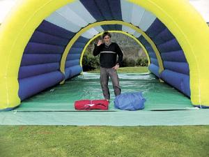 Airbarns provide shelter and are very warm in winter. They pack up into a bag for easy portability and storage.