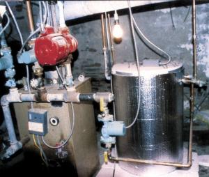 Palmer bought a polypropylene high temperature tank from United States Plastic Company that's designed to withstand 200-degree temperatures and is resistant to corrosive chemicals. He then built two coils that he placed inside the tank. Both coils are made from 3/4-in. dia. copper tubing and are 60 ft. long. One coil is 22 in. in diameter and extends about halfway up the tank. This coil connects to an oil-fired boiler and heats the water. The second coil is 10 in. in diameter and runs from the bottom of the tank to the top. Water for the house runs through this coil. The tank is insulated with two layers of foil-backed insulation. The water inside the tank is never replaced. A remote bulb thermostat is used to control an additional zone on the boiler, thus maintaining a constant 130-degree temperature inside the tank. The hot water heater produces a constant 125 plus-degree water temperature at the faucet.