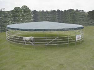 The build-it-yourself ring is made of galvanized steel. Posts are 2 by 3-in. rectangular tubing. Rails are 1 by 2-in. tubing, and bracing is done with 1 3/8-in. round tubing. Included is one 6-ft. gate with latches and hardware. Additional gates are available.