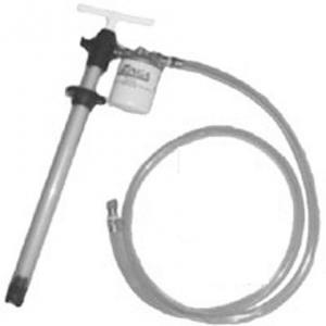 The pumps come with 6 ft. of hose. The models designed for 55-gal. drums thread into 2-in. bunge holes. A filter is available to remove contaminants, if needed.