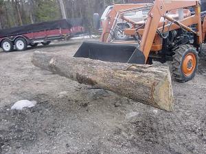 "The forks can be adjusted for width by simply sliding them along the pipe, and they can be folded up out of the way whenever you don't need them," says Fred. "Placing boards across the forks provides me with a large flat area for lifting barrels, refrigerators, generators, etc. I also use my home-built forklift to haul logs to my sawmill."