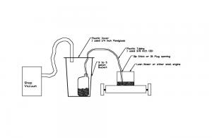 "It's a simple idea but it works good," says Saele. "The plexiglass came from a broken pad that had been used to protect carpet under an office chair. The plexiglass should be slightly larger than the top of the bucket, and it should be thick enough so it doesn't collapse from the vacuum pressure. The tubing has to be pushed all the way down to the bottom of the crankcase in order to remove all the oil.