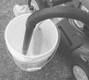 Leland Saele, Ft. Worth, Texas, used a shop vac, a 5-gal. bucket, and a 1-quart oil bottle to make a dandy "oil vacuum" for sucking oil out of his Honda lawn mower engine.
