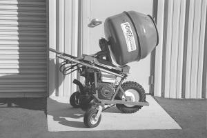 • Hydraulic-powered mixer - You can mix cement while you "drive" this hydraulic-powered mixer. Its 2 1/2-gal. poly tank is small enough to fit through a backyard gate, yet it can carry 100 lbs. of concrete. The machine is powered by a 6 1/2 hp Honda engine that operates a hydraulic pump. You pull a pin to dump the load. Many of the same attachments that go on the Power Trakker can be used with this machine. "It can operate any attachment that runs at 7 to 9 gpm at 3,000 psi," says Campbell.