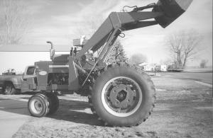 Later, Buseman decided to make another one. This time, he reversed a 560 IH LP tractor and installed a Koyker K-5 loader on it facing backward.