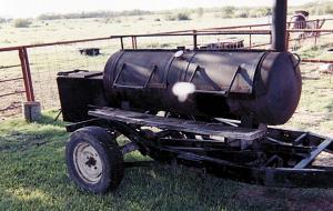 I built a barbecue smoker out of an old 150-gal. butane tank and mounted it on a 2-wheeled trailer built out of an old model T chassis given to me by a friend. The driveline is solid. I can smoke a lot of meat on it. The smoker is equipped with double doors over the cooking area and has a firebox at one end. The top of the firebox can be lifted up to expose an expanded metal rack where I can cook up to 20 hamburgers at a time right over the fire. I often loan it out for community gatherings and for fundraisers at church. (Steve Devaney, 7312 County Road 454, Merkel, Texas 79536 ph 915 537-2303)