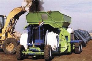 Making compost is easy with the Miller/Ag-Bag compost system. Once the material is in the bag, the bacteria do all the work. The innovative system uses a machine similar to a silage bagger to push waste material into a plastic bag or "pod".
