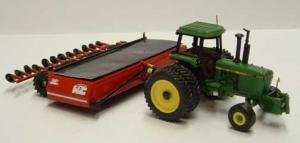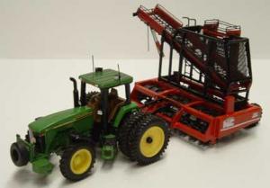 Frikke even modifies the tractors that are used to "pull" the toys. The tractor wheels come factory equipped with wheels set for 30-in. rows. However, beets are usually grown in 22-in. rows, so he spaces the wheels out accordingly. He also adds toolboxes, lights, hand rails, antennaes, and pushers on front of the tractor that pulls the lifter (in case the truck that the lifter unloads into gets stuck, the tractor can push it out).