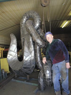 Occasionally he recycles items, such as the boatlift used for the foundation for a lion that Nyberg created for the Henning Lions Club. Once he has the shape, Nyberg welds scraps together "like making a crazy quilt."