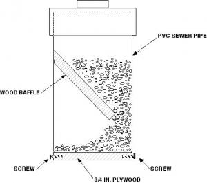 Knowing that hunting dogs can and will eat right through most plastic feeders, Harmon builds his with heavy-duty plastic sewer pipe. He starts with a length of 6 1/2-in. dia. pipe and cuts a hole in the side a few inches from one end. A 3/4-in. plywood disc, cut to fit is screwed to that bottom end.