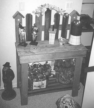 They build a wide variety of items, including shelves, benches, wishing wells, wheelbarrows, birdhouses, chairs, garden workbenches, wall hangings, and picture frames. They sell the majority of them through greenhouses, although they also attend some farmers' markets and craft shows.