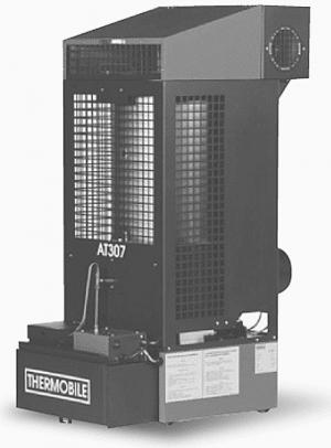 Thermobile offers four waste oil heating units, three with fully enclosed, lock down burner chambers and internal combustion fans for safe use, even in areas with flammable vapors present. The AT 306 and AT 307 are sized to heat 1,500 sq. ft and burn between 0.5 and 0.8 gal. of fuel per hour. The AT 400 will heat 5,000 sq. ft. and burn between 0.7 and 1.0 gal. per hour. The AT 500 will heat 7,000 sq. ft. and burn between 1.0 and 1.6 gal. of waste oil per hour.