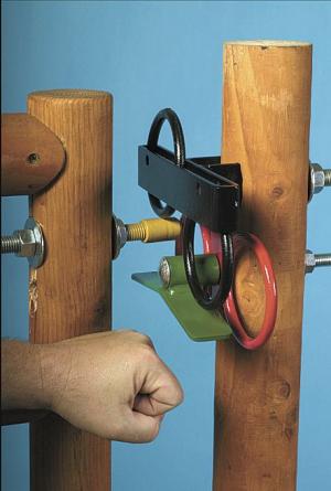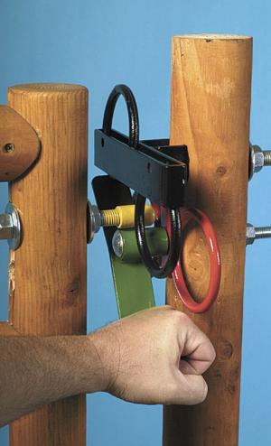 A key feature of the latch is its metal "guard rings," which discourage horses from playing with the device. It's stock-resistant, but not completely stock-proof. The latch must be mounted between 15 and 48 in. above the ground and the reach cannot be obstructed.