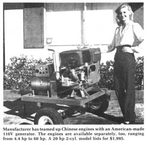 If needed, spare parts are cheap. A cylinder liner, for example, costs about $15 for a Chinese diesel, compared to about $100 for other comparable size imported diesel engines," Waters points out. "There are no unusual features, and no special tools are needed to work on a Chinese diesel engine."