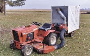 "It works good - I'm surprised at how much vacuum power it has. It sucks leaves right out from under the mower," says Paschke. "I had been hand using a tow-behind lawn sweeper but it was too small and I spent too much time dumping it. As the leaves go through the vacuum it shreds them into mulch, which I use in our garden.