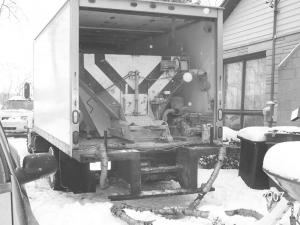 Benjamin put together a delivery truck with an enclosed van body and a used saltbox he purchased from the county highway department. He suspended the box on weigh bars, so he knows exactly how many pounds of corn he delivers to customers' bin using a seed vacuum and 40-ft. stainless steel flex hose. A printer in his truck allows him to print out a professional receipt with the date and amount of corn he delivers.