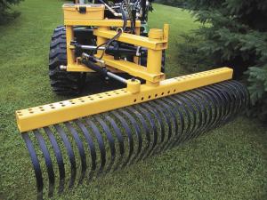 "It is heavy duty enough that when I tilt the angled rake, it can cut into the side of a hill," he says. "If I angle it extremely and offset it, I can pull dirt up from a ditch into the trail. It also works great for pushing material back off the trail. When it's offset at an angle, rocks and brush just windrow to the side, leaving the soil and small stones on the trail."