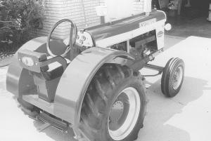 1/2-Scale IH 660 Tractor AG WORLD Ag World Lyle Scott created this eye-catching 1/2-scale International Harvester 660 tractor using the rear end and axle off a Cub Cadet hydro garden tractor and the engine and radiator from a Fiat 850 cc car The front wheel hubs also came off the car This was my first attempt at building a 1/2-scale tractor and I think it turned out pretty good says Scott of Dickinson N Dak He chose the Fiat 850 cc car engine because it was one of the smallest 4-cyl engines I could find The real IH 660 tractor has a 6-cyl engine but the small Fiat 4-cyl has high rpm s and sounds a lot like a 6-cyl engine He made a new exhaust manifold for the engine and modified the radiator and water pump He used sheet metal to make the grill hood and frame The rear fenders are modified trailer fenders The garden tractor-sized battery is located in a box under the seat I made the seat and my wife sewed and covered the cushions with white and black vinyl says Scott The rear wheels started out as 15-in car wheels and are fitted with 12 50 by 15 tires off a trenching machine He cut out the center bolt holes and welded in new metal with a 5-hole pattern to fit the Cub Cadet axle Then he widened the rims by 5 1/2 in in order to fit the tires The front wheels started out as 400 by 9 wheels off an old IH mower He cut the center out and made 5-spoke centers to fit the car wheel hubs The front wheels were one of the hardest parts to make A local tire store was able to order 400 by 9 tri-rib tires to fit the wheels says Scott He cut sections of 6-in steel pipe and made end caps with bolt heads to resemble planetary gears The steering sector is also from the Cub Cadet and was shortened and modified The tractor is complete with a set of half size gauges that Scott bought at Wal-Mart and the muffler was purchased from a farm supply store A plastic bowl was used to make the air cleaner To make the lettering I used hardware store stick-on letters and some pin striping says Scott I made the front IH emblem by cutting and welding 3/8-in key stock The grill bars are made from 1-in sq tubing The headlights are pvc end caps with plastic ceiling fixtures cut round and glued on for the lens The steering wheel is the only thing that isn t half scale It s off the Cub Cadet notes Scott Contact: FARM SHOW Followup Lyle W Scott 1561 First Ave E Dickinson N Dak 58601 ph 701 227-1524; jlscott@ndsupernet com