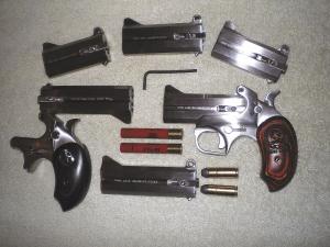 Suggested retail prices for Bond derringers range from $389 to $599 for the top of the line Ranger model, complete with custom leather holster and black padded carry bag.