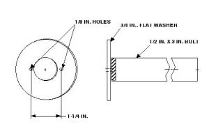 To make the job easier, he developed an attachment for his cordless drill that consists of a 3-in. long, 1/2-in. dia. bolt and a 3/4-in. dia. flat washer. He ground the bolt head down a little, until the washer would slide over it, and then welded the bolt head and washer together. He drilled two 1/8-in. dia. holes in the washer about 1 1/4 in. apart. The holes are in line with and an equal distance from the center of the bolt head.