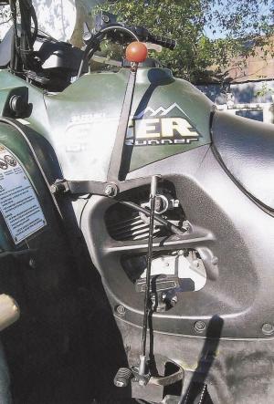 When the handlebars are straight, the knob is about 6 in. away, so it's easy and safe to operate. Eveleigh notes that the whole thing can be unbolted in a few minutes, and that he didn't have to make any modifications to the 4-wheeler. He figures his design can be easily adapted for other model machines and says he's willing to share his sketches.