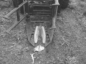 The V Cutter uses two fixed blades of 5/8-in. carbon steel. The 2-ft. long, 6-in. per side shears can cut multiple trees at once or a single tree up to 8 in. in diameter. The heavy-duty tubular steel frame keeps weight at just 500 lbs.