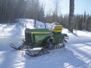 When people first see Wyatt Kram's garden tractor snowmobile, they often ask when Deere manufactured the machine.