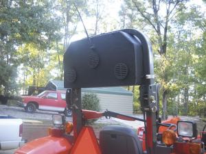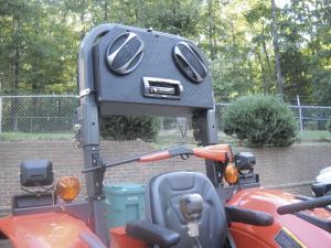 For about $250, Kennedy set up a stereo system with components that mount on a removable, vinyl-covered "box" that's U-bolted to the tractor's rollbar. The box supports a JVC CD/radio equipped with a remote control and Pioneer 6 by 9-in. speakers, all purchased at Best Buy. A simple rubber radio antenna from a local parts store rounds out the package.