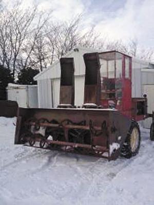 "I used the Massey Ferguson swather because it's hydrostatic, which allows me to go real slow if I need to. I run the transmission in second gear with the engine rpm's at about 2,800. I mounted the governor from an old Deere 95 combine on the 292 engine, so when the snowblower gets under load the governor kicks in and gives the engine more gas. The add-on engine is handy because I can put the automatic transmission in reverse to eject anything that gets caught in the auger.
