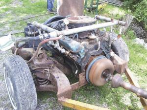 "I called Harold a couple times, and he was real helpful," says Jamison. "I pulled the engine and discarded the transmission, but kept the flexplate and torque converter. I stripped the front fenders, bumper, radiator support, etc. from the front clip and cut it free from the engine."