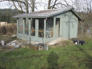 "It didn't cost much to build and is really handy," says Wess. "I use the south end of the building as a greenhouse and the north end for storing yard equipment. I went to my shop and built all the building's components out of 8 by 8-ft. plywood panels, and then stored and painted the pieces in my garage.
