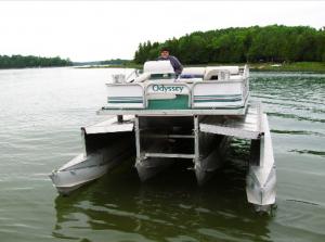 According to Wiltse, his pontoon boat has amazing stability. "I can walk right out to the edge of the pontoon and jump up and down, but the pontoon won't even move," says Wiltse. "In tests I've found that I can drink a cup of coffee without spilling while riding through 4-ft. high waves. In fact, it would be really hard for anyone to get seasick on this boat."