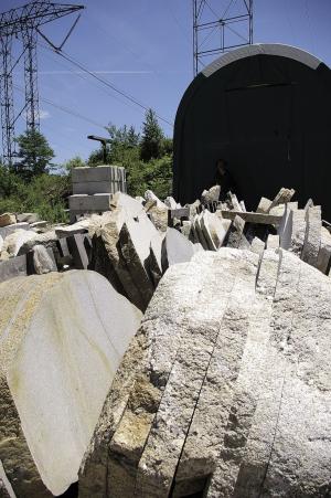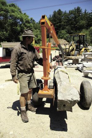 Bedard's "made-it-myself" rock saw is what really opened up "recycling" opportunities for him. It allows him to slice through 5-ton, 4 by 4 by 8-ft. rocks with ease. His only real size limit is his 17,000-lb. capacity loader.